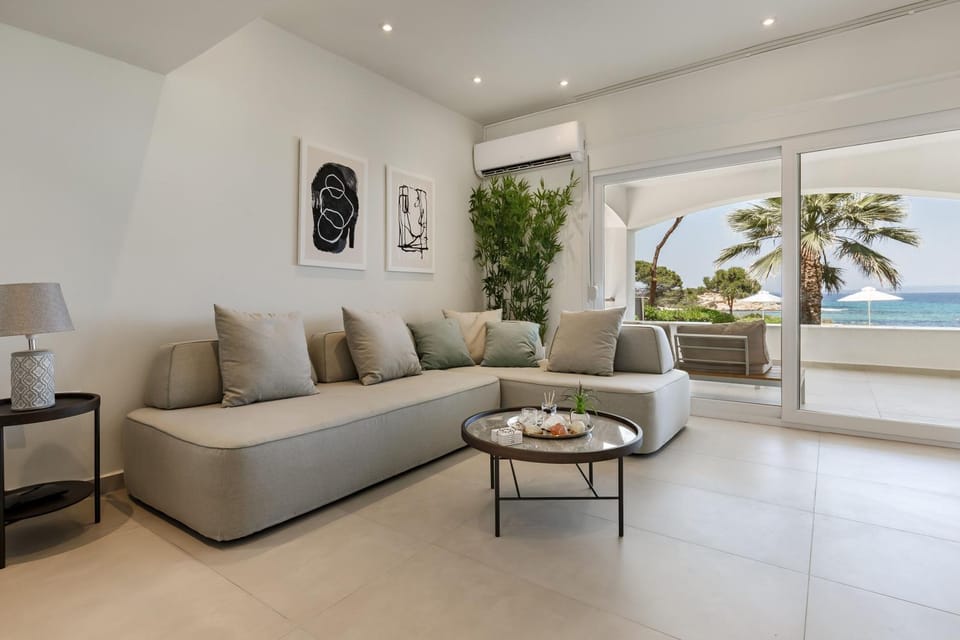 Great location with beautiful view of the beach. Big shady patio with sofa and table. Nice garden with sunbeds and umbrella. Fully equipped kitchen and good air conditioning . Very private and quiet, great for relaxation. Excellent Wi Fi and TV.