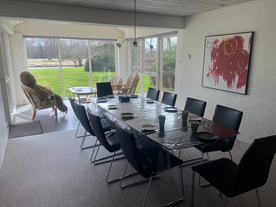 Very lovely place. Garden is very spacious and cozy. We could see ducks chilling on the riverbank every morning. Kitchen was well stocked with everything we needed. House was spacious too so everyone had their own space. Surroundings are nice. Bjeringbro is a cozy little town.