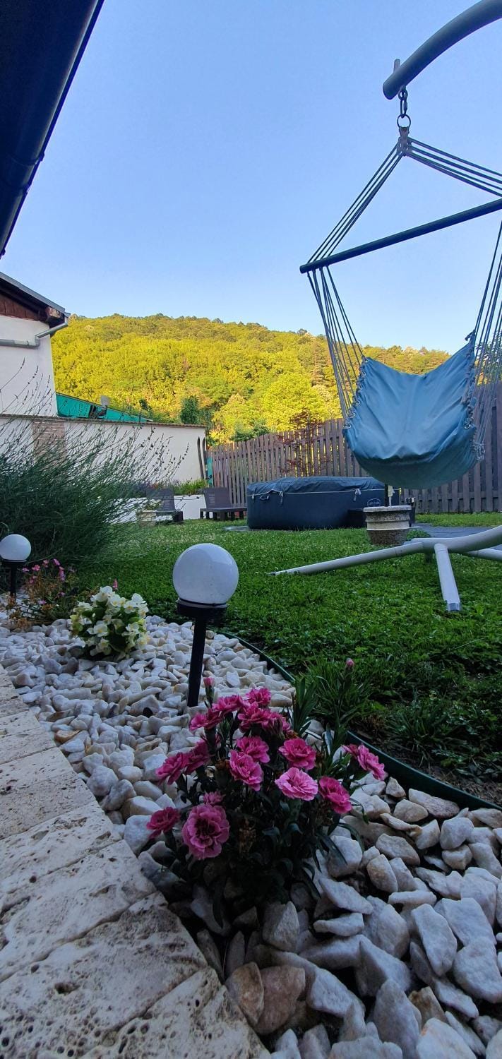 Zona liniștită, privleiștea spre munți, lavanda înflorită din grădină, șezlongurile, jacuzzi-ul, toate astea ne-au oferit o ședere plăcută șimfoarte confortabilă timp de patru zile caniculare.