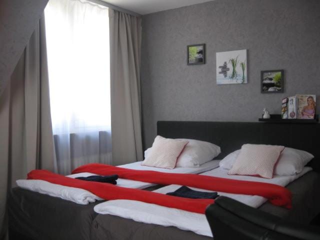 Stayed in the 2nd floor. Well furnished room (includes TV, small fridge), beds were comfortable and heater was working fine. Washroom & Kitchen were clean. Kitchen is modern, looks renovated and well equipped with plates, dishwasher etc.