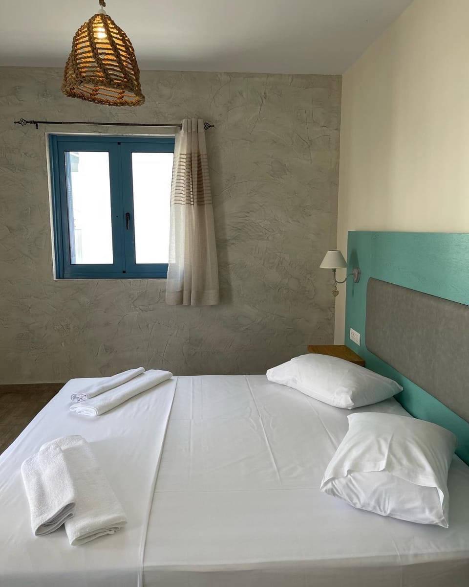Really nice apartment (mine, 1st floor) in a recently renovated structure, with a double view and a lovely balcony. Clean and well ventilated room such that A/C is almost useless (September). Basic and useful amenities to cook something (but... Why struggling if you can go out and eat good Greek food? 😬).