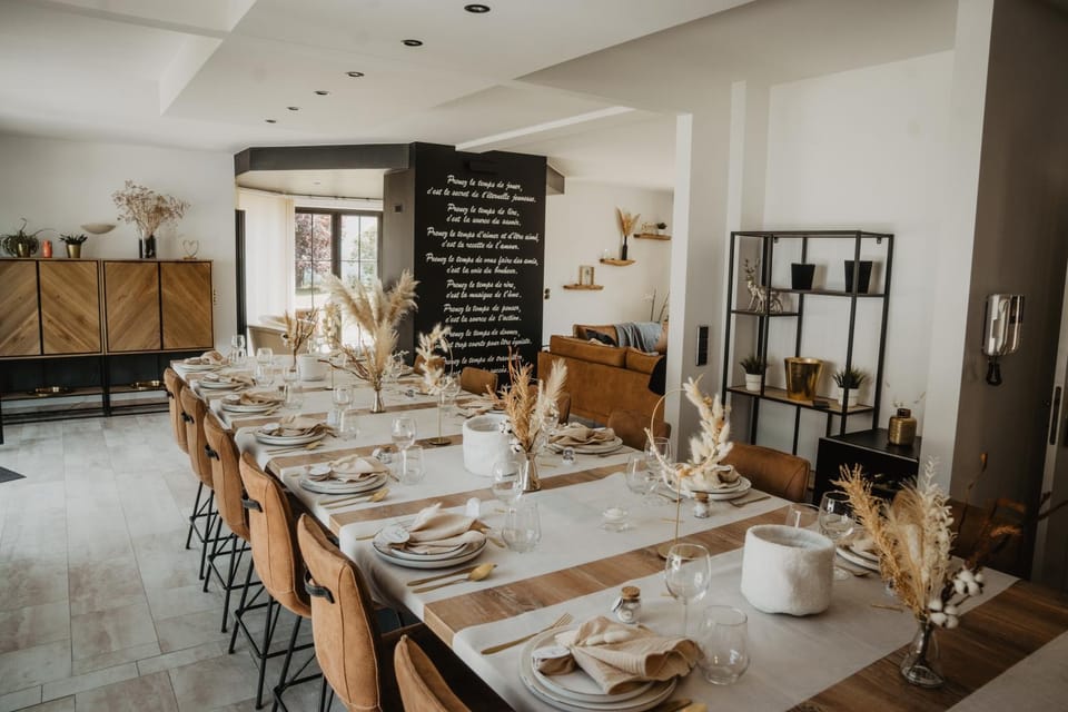 The spacious rooms, stylish interior, and facilities (including a sauna and jacuzzi) were outstanding. The beds were very comfortable, and there were plenty of bathrooms. The hosts were quick to respond, very friendly, and flexible with check-in and check-out times. I would definitely recommend staying at this beautiful place in the Ardennes! Kayaking in Dinant was nearby and a fun activity. The house was well-equipped, with coffee (both pods and filter), tea, and cleaning supplies provided.