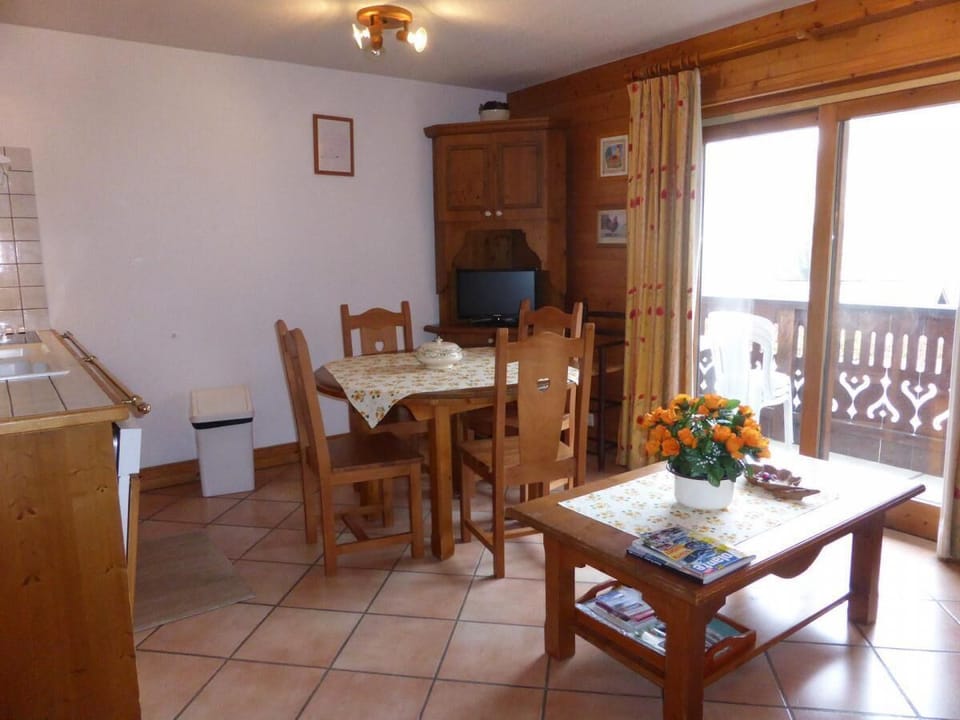 Les Hauts de Chavants, (no lift) is a residence made of 7 buildings, each with 3 to 4 floors. Albert 1er is located 200 meters to the ski slopes, skibus stop and Prarion Gondola. Les Houches town center is to be found 1900 meters away. Surface area : about 32 m². Floor -1. Orientation : North, East. Living room with pull-out bed (2*90*190), TV. Bedroom with double bed (140*190). Small bedroom with 2 bunk beds (90*190). Kitchenette with oven, dishwasher, vitroceramics cooking rings, fridge. Separated WC. Shower room with shower. Balcony. The beds in elevation are not suitable for children under 6 years.