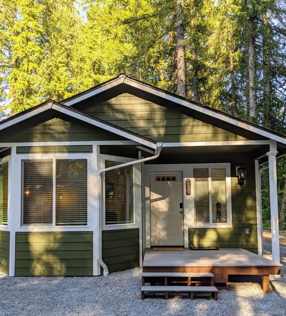 We enjoyed our stay here in this cozy cottage. It was clean, neat and had a washer/dryer. The yard was big with tall trees all around. It's only 5 miles from the entrance to Mt. Rainier National Park.