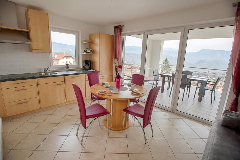 Wat een fijn appartement met fantastisch terras met een prachtig uitzicht op het dorp, heuvels, bergen en meer. App is super luxe met hoogwaardige materialen. Luxe schuifdeuren door gehele app en naar het terras. Terras is groot met ligbedden en eettafel en stoelen. Fantastisch om te eten of gewoon te genieten. In woonkamer staat grote leren bank met ook weer dat mooie uitzicht. Voor alle ramen elektrische zonwering. Keuken is modern en voorzien van werkelijk alles. Incl koffiecup machine en koffiefilterapp. Bedden zijn super goed. Dekbedovetrekken idem. Badkamers heel ruim, ruime inloopdouche. Alles blinkend schoon. Parkeergarage onder het complex. Afgesloten middels code en mega groot, ook daar kan je elektrische fietsen stallen. Lift in complex. Buitenzwembad is verwarmd en tijdens zwemmen weer dat mooie uitzicht. Mooie verzorgde tuin. App ligt hoog, maar met elektrische fiets fiets je zo overal heen. Gratis tirol guestpas krijg je, hiermee oa met cable trein gratis naar boven naar de naast gelegen berg. De zeer vriendelijke eigenaren hebben eigen website, met oa allerlei tips. En elke ochtend krijg je een mini krantje met tips, weersverwachting ed. Wij hebben genoten van dit appartement.