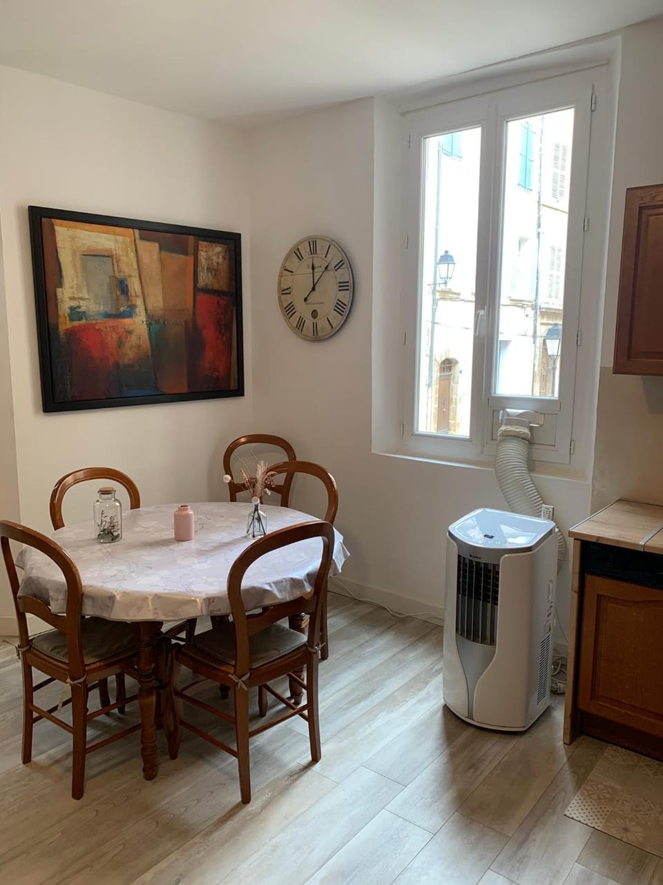 L’appartement est très agréable, très bien situé au cœur du charmant village d’Aups, il est grand, très propre, bien équipé et lumineux. Salle de douche avec WC + un 2ème WC ce qui est bien confortable. Il y a lave vaisselle, lave linge et sèche linge, machine à café nespresso + cafetière filtre, toute la vaisselle nécessaire, décoration sobre où l’on se sent bien. Il y a 2 grands parkings dans le village et des commerces de proximité à 2 pas du logement.Le propriétaire est facilement joignable : tout pour passer un bon séjour, nous sommes ravis et reviendrons certainement dans cet appartement lors de prochains séjours dans ce joli coin où il y a mille choses à découvrir.