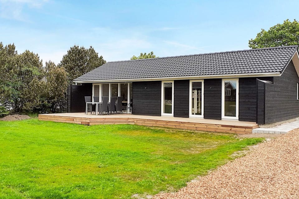 This modern holiday home near Helberskov offers the perfect mix of comfort and nature, ideal for up to 8 guests. With its energy-friendly design and modern amenities, it’s a place where families and friends can truly relax. The house features three bedrooms, two with double beds and one with bunk beds for four making it a cosy choice for both adults and children. The heart of the home is the bright living room, seamlessly connected to the fully equipped kitchen. Large windows flood the space with natural light and open directly onto a raised wooden terrace with several cosy corners for morning coffee, family dinners, or evenings under the stars. Outside, the spacious natural plot invites both relaxation and play. Children will love the swings, sandbox, and slide, while adults can enjoy barbecues or simply unwind in the tranquil, green surroundings. With the beach only 200 m away, days can easily be filled with sand, sea, and fresh coastal air. Practical amenities such as a dishwasher, washing machine, underfloor heating in the bathroom, Chromecast for streaming, and an air-to-air heat pump ensure a stay that’s as comfortable as it is carefree. Shops and restaurants are close by, but here you’ll feel a world away from the bustle. Whether it’s building sandcastles, cooking together, or simply enjoying the peace of the forested setting, this holiday home offers a truly refreshing escape.