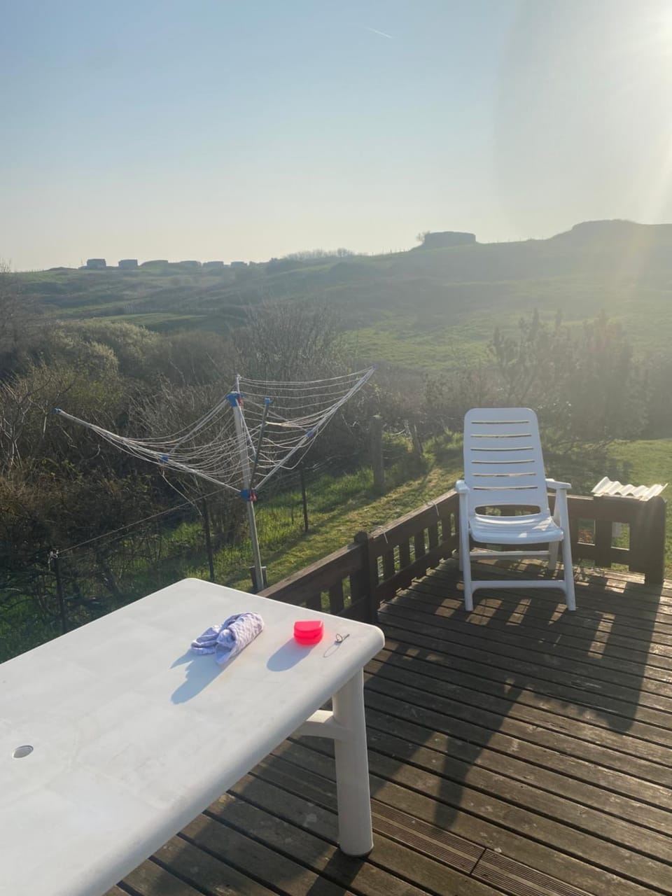 Locatie is top, mooi uitzicht met links de zee en rechts een weiland met koeien en fazanten.