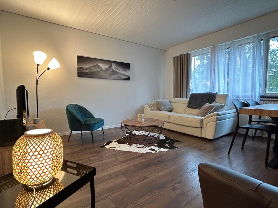 The location was perfect, easy walk to town and bus stop nearby to go further. We drove our car once! The apartment was lovely - even better than the pictures. The bed was comfortable and everything was clean and in order. WiFi worked great for the few days I teleworked. The hosts were responsive, friendly and went the extra step to meet us and make sure we were settled. And they left us a delicious treat for breakfast and yummy Swiss chocolate! We ended our stay watching the European Master’s Golf tournament with holes 4 and 5 right out front. The one trip we took by car to Lake Tseuzier was amazing. Beach club was open first weekend we were in town and it was lovely too. Highly recommend the location and apartment.
