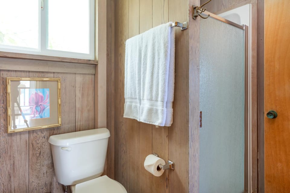 The location is amazing! Manini beach is a very short walk away (about 120 steps). The overlook from the deck on the bay is awesome, and listening to the waves at night was a great way to fall asleep. We only used the upper level, but there were two more bedrooms downstairs with their own exit to the bay for larger groups/families. We were usually out of the house most of the day, but the mornings were great because you could see dolphins every once in awhile playing in the bay and at night, the sunsets were amazing. NO AC, but the breeze at night usually made sleeping very comfortable - but there are also ceiling and floor fans that helped, especially on the day we did remain at the house all day. If you are looking to get away from the more highly populated areas of the island, this place was great. Snorkeling in the area directly in front of the house was some of the best we have experienced, and turned out to be our top choice in the three islands we visited (Oahu, Kauai, and the Big Island). Open floor plan was nice, and we spent a lot of time on the deck. We would go back in a heartbeat!