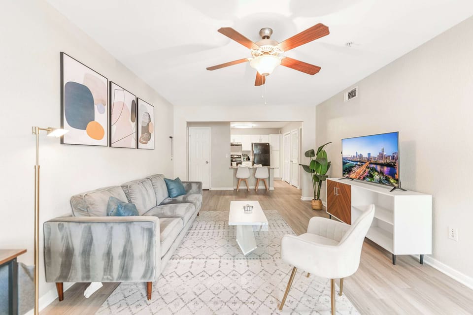 Welcome to your new home in Riverside - a fast-growing and increasingly trendy community right next to Downtown Austin. Our 1,005 sqft 2-bedroom apartment comes standard with a fully-stocked kitchen, well-appointed bedrooms, washer & dryer, community gym, free parking, dog-friendly (pet fee applies), and fast internet to accommodate your stay.