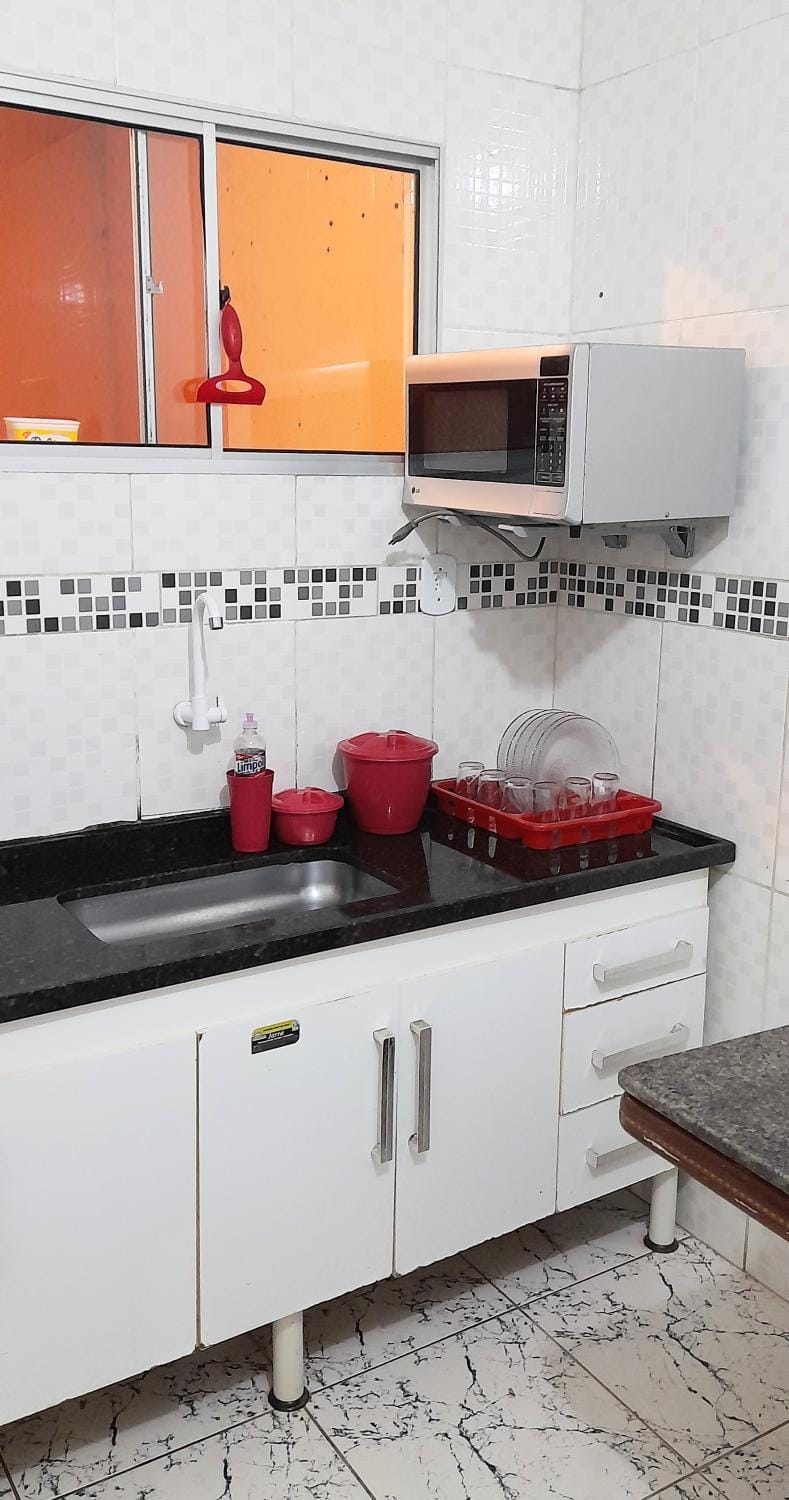 O fogão não funciona muito bem e a geladeira demorou muito pra gelar os itens que compramos. Tive que improvisar com a compra e gelo no depósito de bebidas.