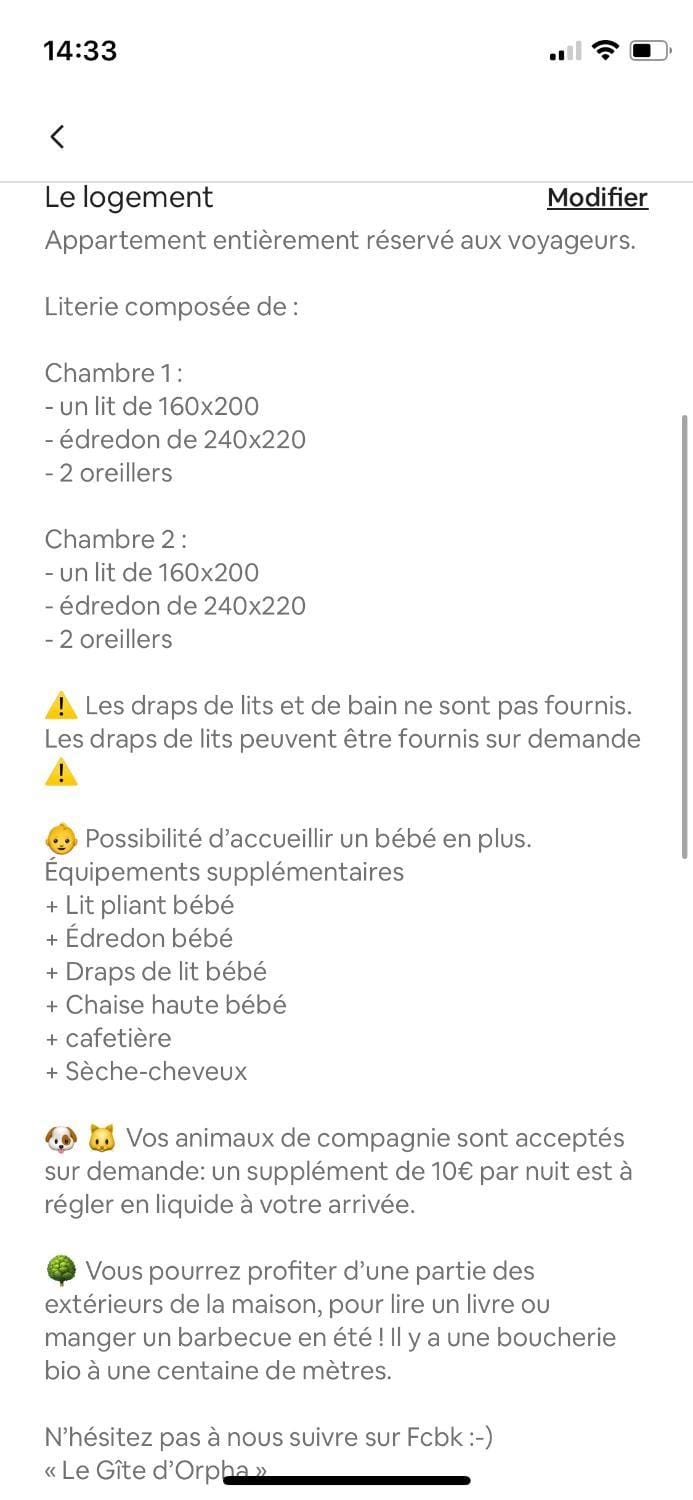Amenities at Le Gîte d’Orpha