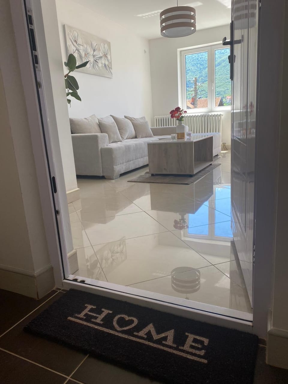 Lokacija jako dobra blizu centra prodavnice i pijace.Pogled sa terase fantastičan gleda u planinu.