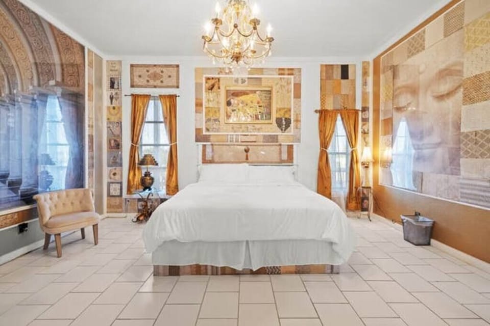 2-Bedroom Unit in a Fun and Free-Spirited Inn Want to stay in a unique inn that embodies the “Keep Austin Weird” aesthetic? Look no further than River Ranch Inn! With its whimsical vibe and rich history, this Inn is the perfect stay for those who want to experience all that Liberty Hill has to offer. Located right next to the South San Gabriel River, this spot is the perfect place to bring your kayak, paddleboard, and fishing gear! Our Inn has eight units. This unit has two bedrooms, a full bath, and a kitchenette. Each room has its own bohemian theme, and the entire space can comfortably accommodate up to FOUR guests. If you have MORE in your party please feel free to message me and I can send you links to the other units. The main bedroom is a light and airy Moroccan-themed room with a king-sized bed. It comes with a dresser for storing your clothes. It also has a TV to unwind at the end of the day. The warm and inviting second bedroom comes with a queen-sized bed. Our full bathroom comes stocked with fresh linens for your comfort. While Liberty Hill has amazing eateries (we highly recommend Hell or Highwater Brewery and Agape BBQ!), sometimes nothing beats a quiet meal with your friends after a day of fun. Whether unwinding at the end of the day or grabbing a quick bite in the morning before heading out, our convenient kitchenette will meet your needs. The kitchenette comes stocked with all the essentials for a simple meal. Just bring your food! Some items included: • Blender • Cups and mugs • Coffee maker • Microwave • Refrigerator • Plates and cutlery The kitchenette also has a small table and four chairs to relax for your meal. Or feel free to eat and hang out in the common area on the ground floor! While you are here, the unit is your private oasis. Feel free to use the amenities in the room. The ground floor does have a common area to hang out with other people staying at the Inn, charcoal bbq grills, and is where we store the washer and dryer. The river does allow fishing, kayaking, and paddleboarding, so bring your equipment to enjoy! Also, bring chairs to relax by the river. Due to the current pandemic, we have enhanced our existing cleaning protocols. In addition to our comprehensive cleanings between every stay, all surfaces inside the house, including door handles, light switches, counters and tabletops, devices, handrails, and appliances, are cleaned with a CDC-approved disinfectant. Our guests’ health, safety, and well-being are our top priority. Our calendar is filling up quickly, so book your unforgettable getaway today. We hope to host you soon!