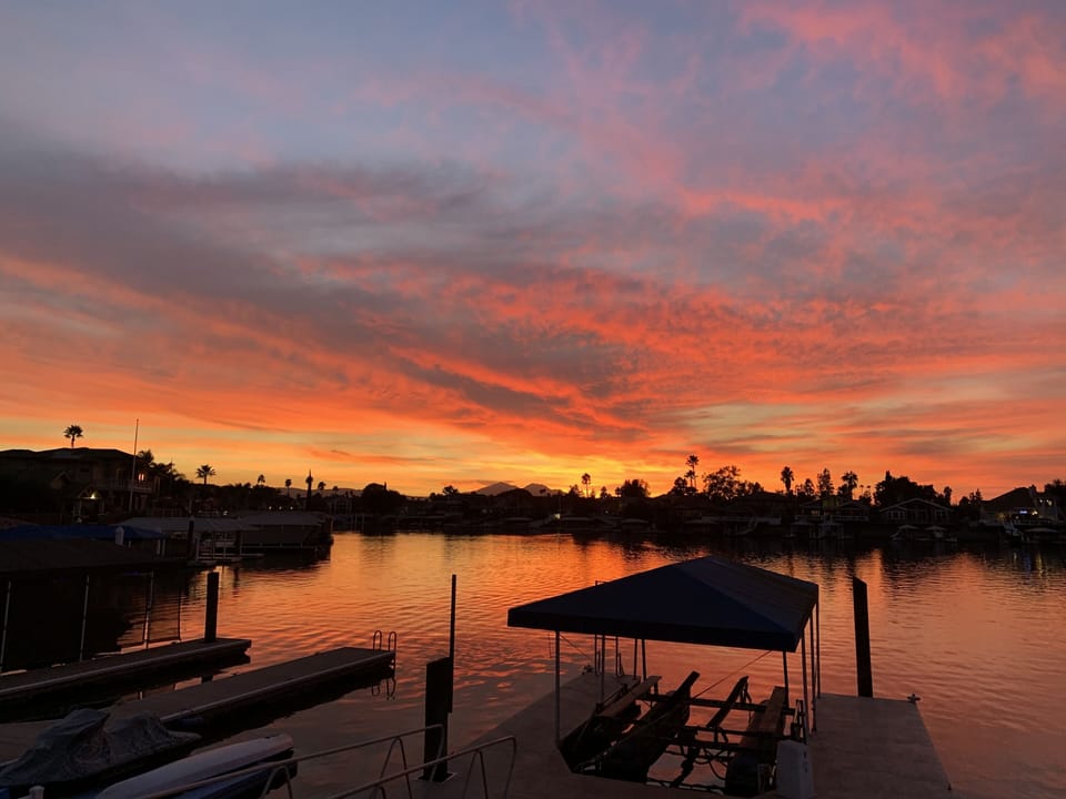 The dock is in a secluded private bay which is great for swimming, or just floating on a raft. There is also great fishing right off the dock. (You need fishing license for California) The private over-sized double U dock has room for 2 boats. (Our boat is not included in home rental)