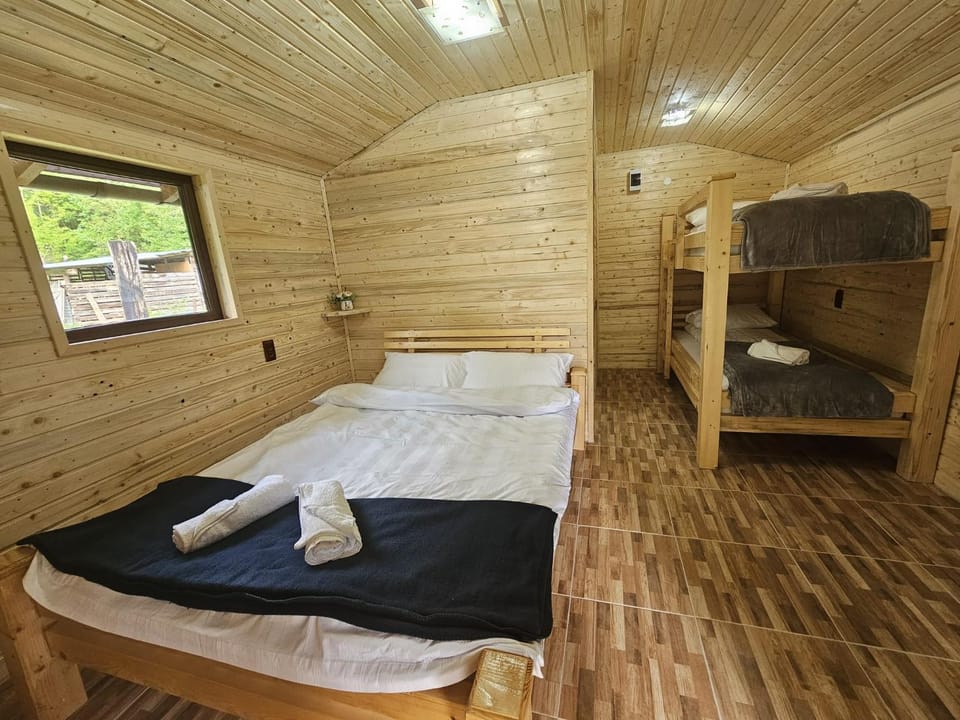 Good place for families with kids, they had a trampoline, a sand box, nice gazebo. The beds were cozy.
