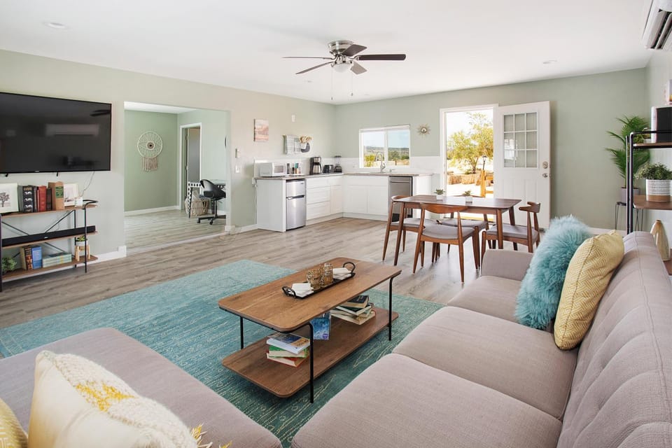 Soak up the beauty of Joshua Tree in our House, Cozy 2-bedroom Artist Retreat in adorable Joshua Tree with Spa Art Games Deck AC. With a range of amenities such as Pets allowed, Family friendly and Non-smoking, you'll feel right at home.