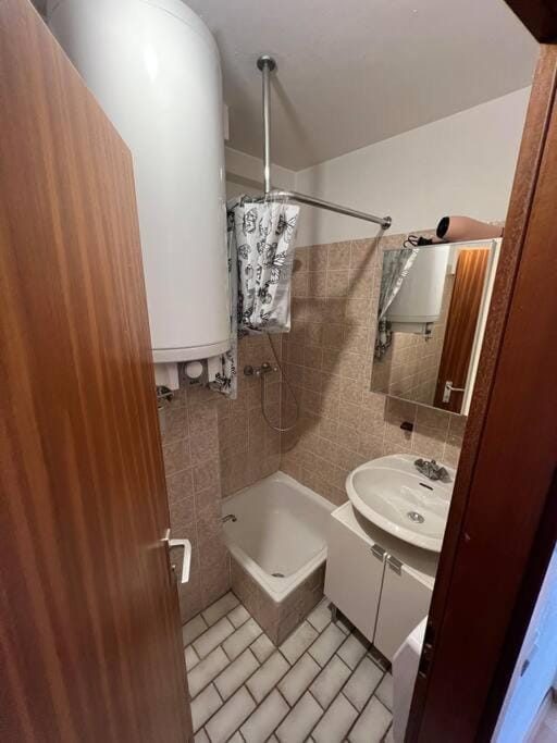 Very central for restaurants and bars etc. We parked/secures our motorcycles in the pedestrian walk way immediately opposite the flat where we could see them. No issues, very quiet after about 10pm. Flat although compact, accommodated our 3 friends fine in a double bed each