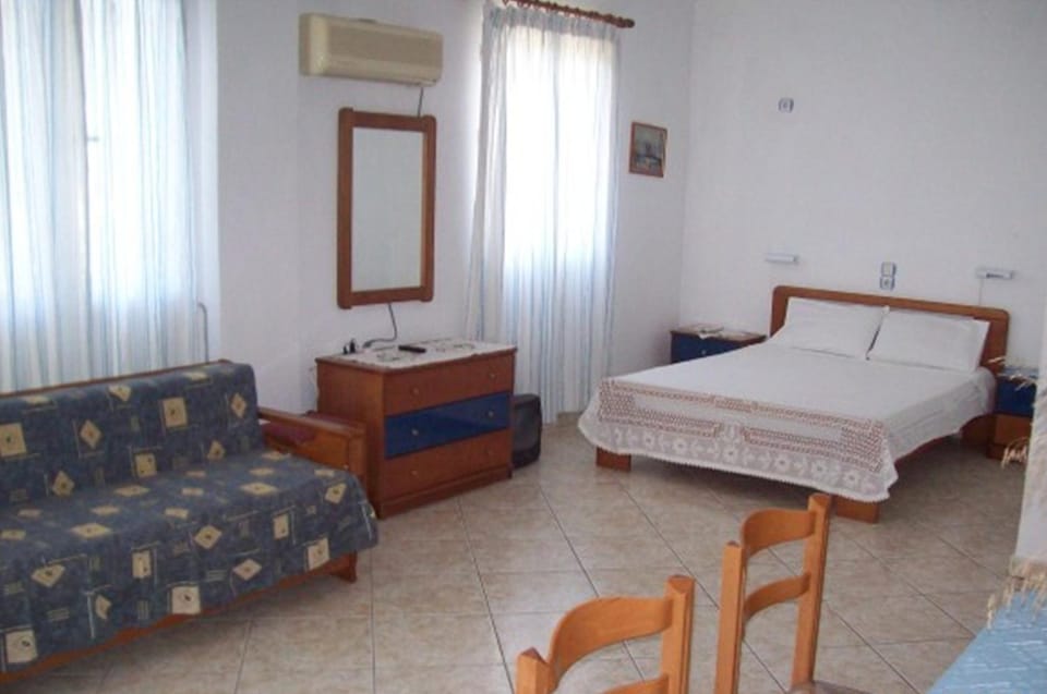 I booked the "studio with panoramic view." I didn't have a "balcony overlooking the Aegean Sea". I did have a outdoor space with a table, but it was at the back of the building looking at a street. It was more like 500m from the sea. Made the mistake of not reading all of the reviews beforehand, this happens often.