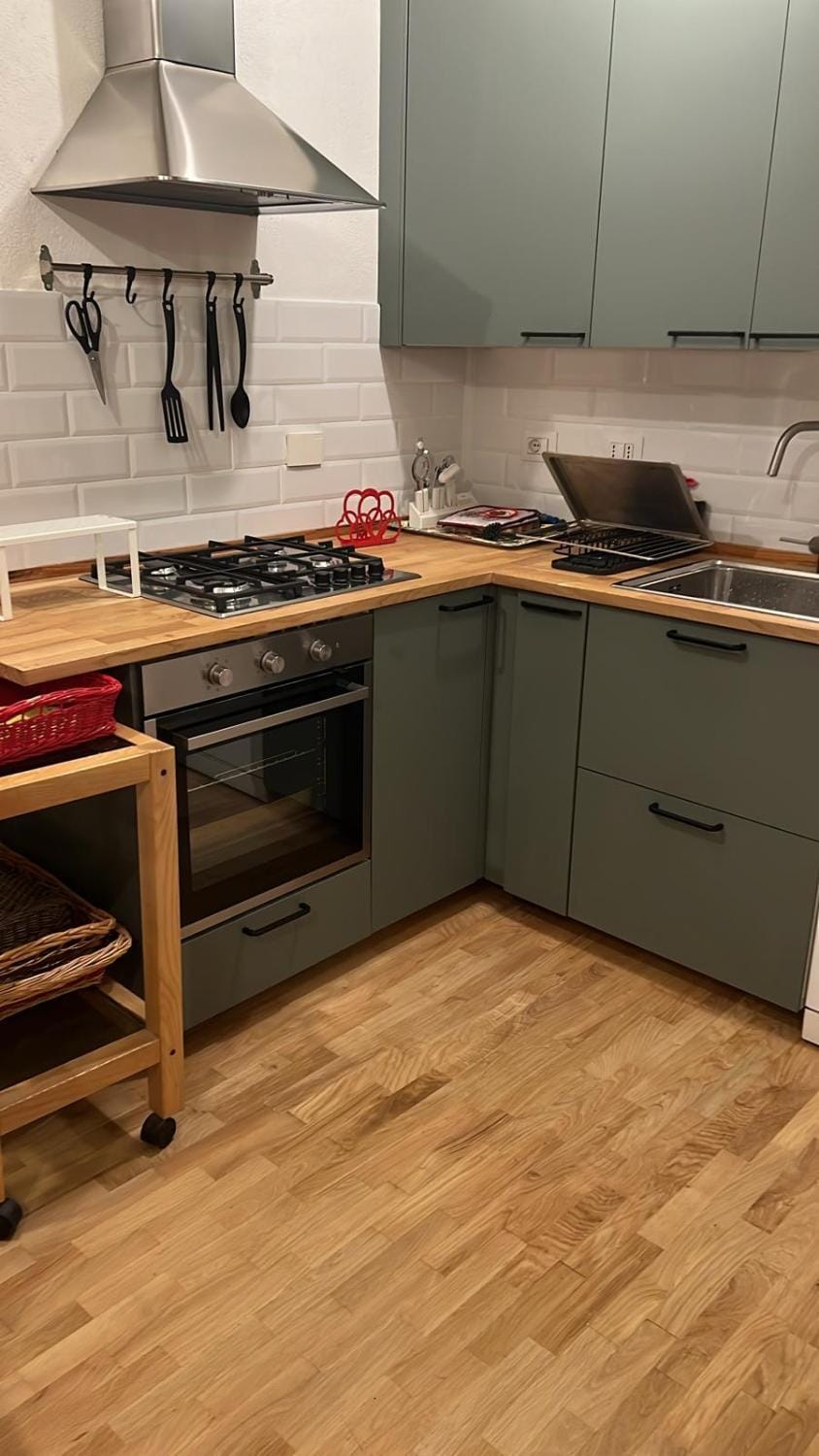Posizione ottima in centro…parcheggio fuori casa per le nostre macchine senza problemi…casa grande tante camere 4 bagni…eravamo in 12…bel salone grande …tavolo grande …cucina nuova