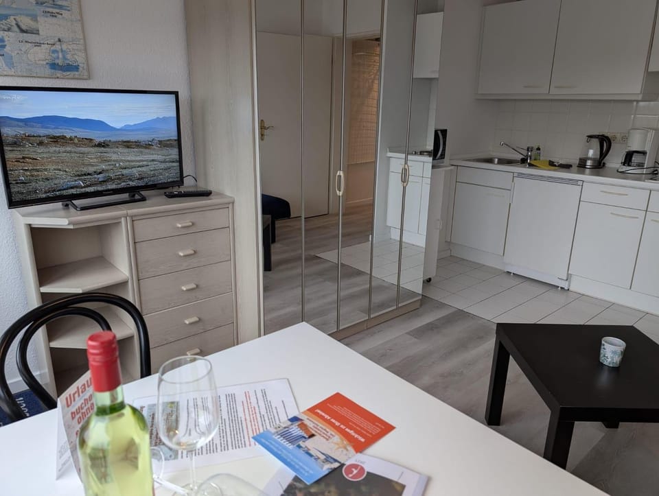 Business stays, family stays, couples stay, getaway vacation, and rental in Wenningstedt-Braderup at Apartment with kitchenette, dining room, bathroom, bedroom for $112 for your next trip.
