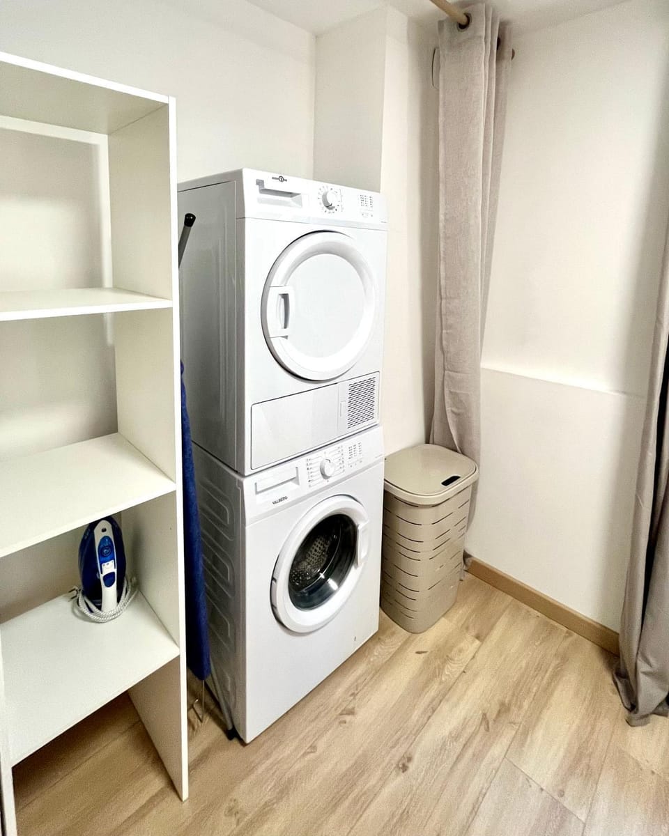 A little bit to much to walk from downtown to apartment. Wash machine in room.