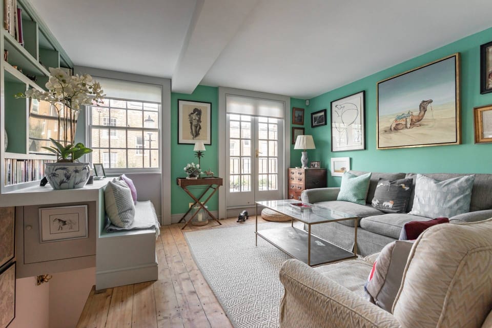 Royal Crescent Mews is a one-bedroom retreat tucked away on a pretty residential street in Holland Park. Deceptively spacious, this charming home unfurls across three levels - a lovely base for a couple’s getaway or business trip. On the entrance level is the sleek kitchen and dining space, watched over by two graceful leopards - a gorgeous charcoal artwork which adds a touch of South African influence to the home. From here, stairs lead up to the sitting room; a bright and cosy space inspired by traditional country chic. This charming living space does not shy away from colour and character; accompanying the soft mint colour palette are a variety of vibrant cushions and unique art pieces. Climb the stairs to the third level, and you’ll discover the elegant master bedroom with its private ensuite bathroom. Nestled between Notting Hill and Kensington, this leafy corner of West London is home to plenty of green spaces that allow you to take a quiet moment from the daily bustle. Or, if your idea of unwinding involves a good dose of retail therapy, the nearby Westfield London shopping centre is sure to please. Planning on exploring the rest of the city? Just a five-minute stroll from your doorstep is Shepherd’s Bush tube station, with the central line taking you through the heart of the city; Marble Arch, Bond Street, and Oxford Circus are just a few of the stops along the way.