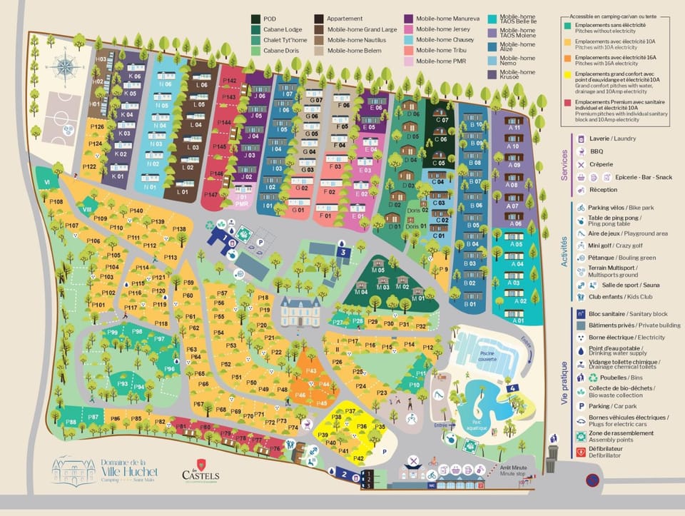 Parking is not specified as an available amenity at Camping Domaine de la Ville Huchet. For more information, we encourage you to contact the property about where to park.