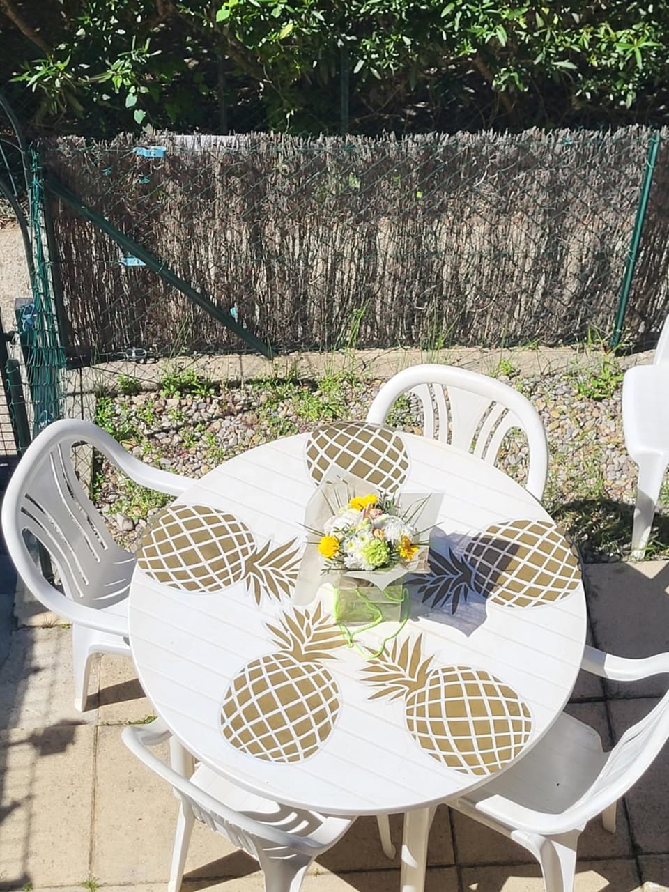 la terrasse est très agréable pour déjeuner , un store abrite du soleil.