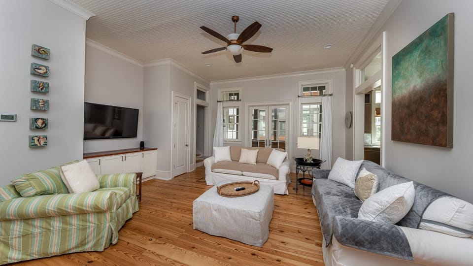 The location of this property was great. We were just steps away from shops and restaurants, and a trolley took us to the beach. We also ventured out by car to Inlet beach and Dune Allen beach to cover the entirety of 30A. At night we were able to walk to the bar for drinks togo and return to relax on the screened porch while enjoying live music from the circle.