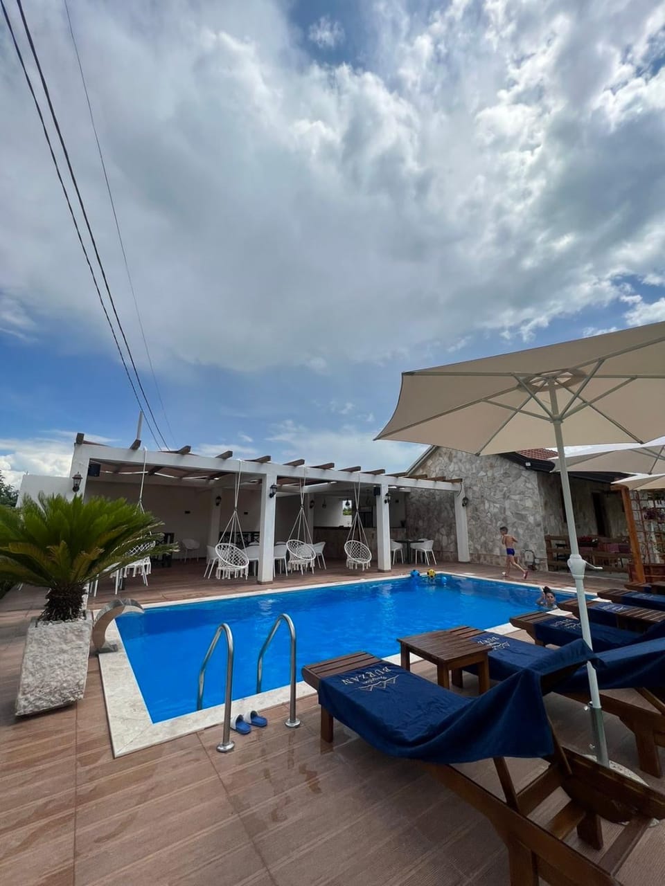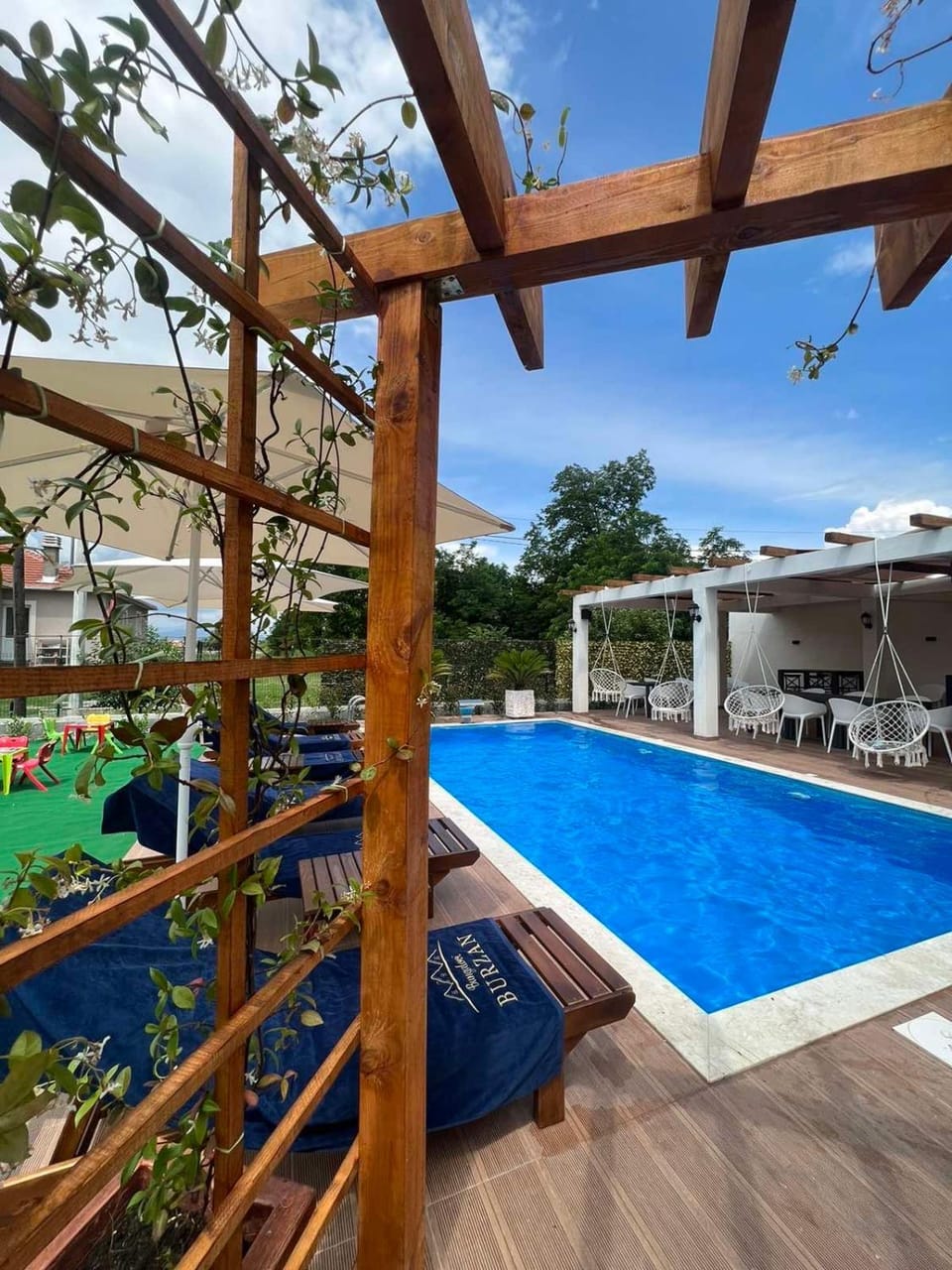 Yes, a swimming pool is available for use at Burzan Bungalovi. Enjoy the water!