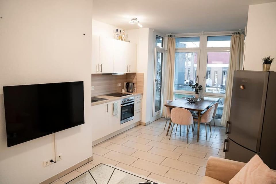 Nette kleine Wohnung mit Balkon, Fußbodenheizung im Bad, sehr zentral gelegen, Bahnhaltestelle in der Nähe, Bushaltestelle direkt vor dem Haus, liebevoll eingerichtete Details, großer Kühlschrank, TV, Netto gegenüber, Bäckerei Klein auf der Alfred Nobel Straße gut zu erreichen