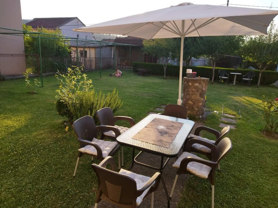 first of all, we found the house cooler than the other ones we visited in Podgorica, so it's a nice place for summer.. The rooms we're big and the kitchen had enough equipment for us to cook and eat nice meals. There is also a big garden where you can drink your morning coffee... For anyone who also has to work during their visit, the internet is great.
