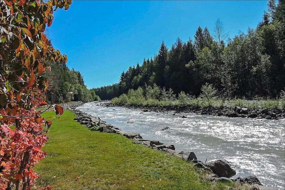 Riverside cabin near Mount Rainier with hot tub