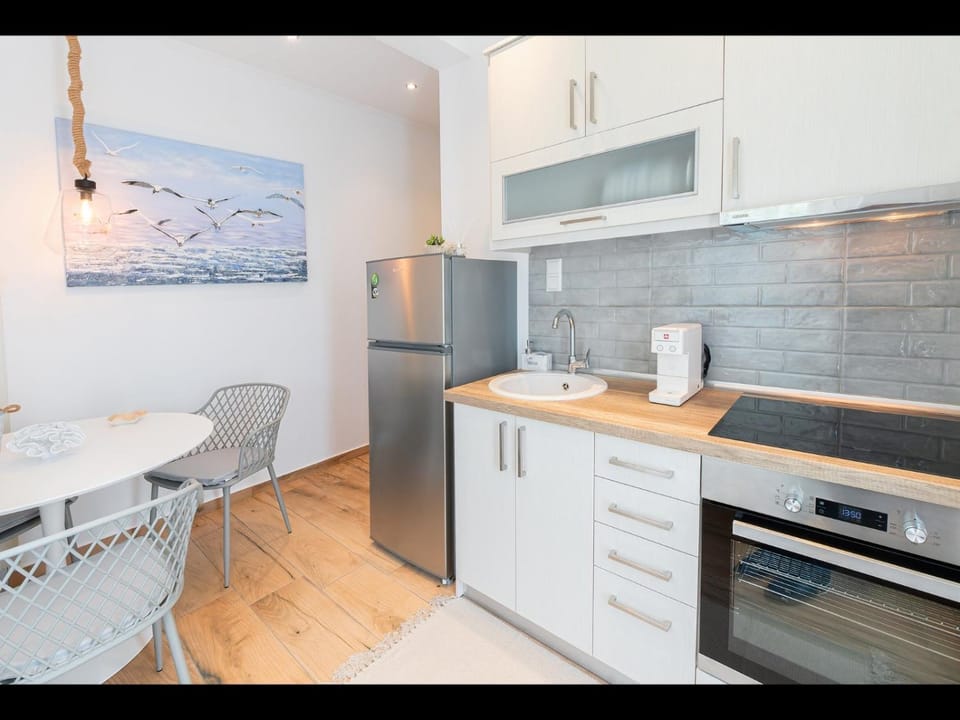 Place was quite, with easy access on foot to beach, beach bars, tavernas and basic shop. 5-10 min by car there are other small villages with stores and places to eat. The appratment was clean, enough space for family of 4. Had kitchenware and dishwasher, although we did not cook in. There was table outside which was nice although the space in the garden was smaller at this side of the house. I would recommend in any case.