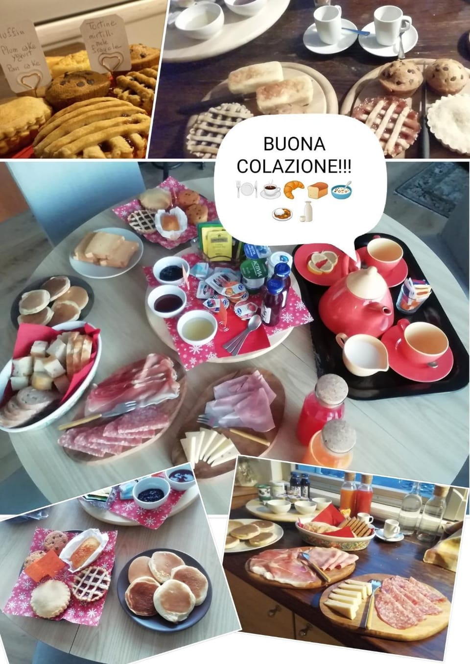 Dolce e salato...bevande calde e fredde, yogurt, marmellate, affettati, formaggi.