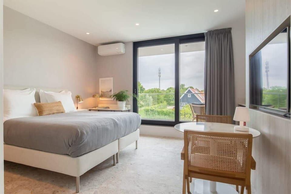 Summum Suites 3 in Domburg are a perfect luxury getaway for couples. Just a short walk from the beach, these stylish suites offer everything you need for a relaxing stay. Enjoy a cup of coffee on your private terrace with a Nespresso machine and the peace of the countryside. With air conditioning for your comfort and electric charging points for your car, it's an ideal spot for a romantic outing. Unwind and discover the beauty of the region with your own bike. This is where luxury and nature meet.