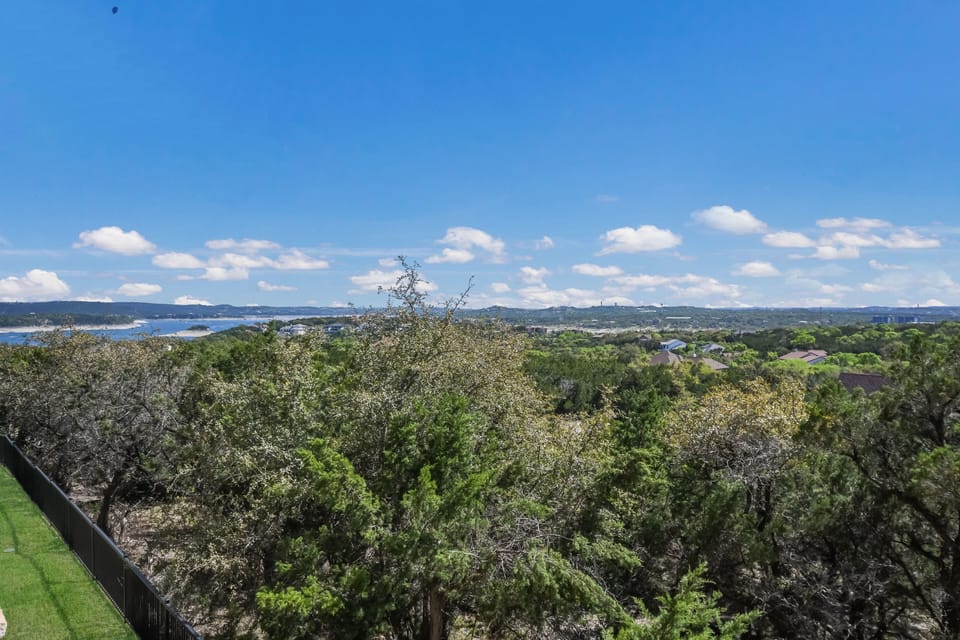 Experience Texas Hill County and all it has to offer from this hilltop villa in one of two buildings that directly face the lake. As an end unit on the second floor, this 1,246 SF unit has large, airy windows; the front door is feet away from an elevator so you won't be schlepping luggage or groceries up steps. The additional 330-square-foot balcony is like having a second living room and dining room and provides lots of space to spread out. It has unobstructed views of the lake, perfect for early morning bird watching over the tree canopy or relaxing after a day spent at the pool or lake. Enjoy a good book or a delicious cocktail (or both!) on the rattan sectional, or dine al fresco at the patio table. And there's still space leftover for everyone to gather or for a sunrise yoga session. The view of the lake is as beautiful at night as it is during the day.