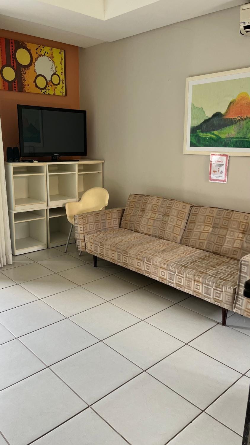O apartamento é bem equipado, limpo, com ar condicionado, perto do parque aquático, tem piscina, restaurante proximo, estacionamento, tem equipamentos para fazer café da manhã.