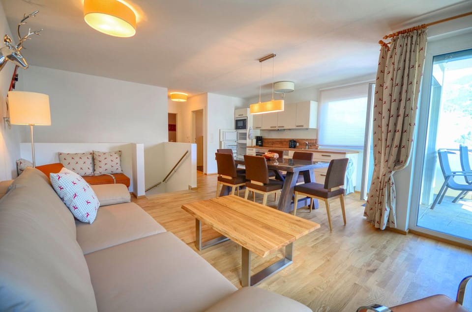 This apartment is furnished with contemporary Austrian fittings and boasts a large, wrap-around balcony facing south-east, as well as a cozy little garden.