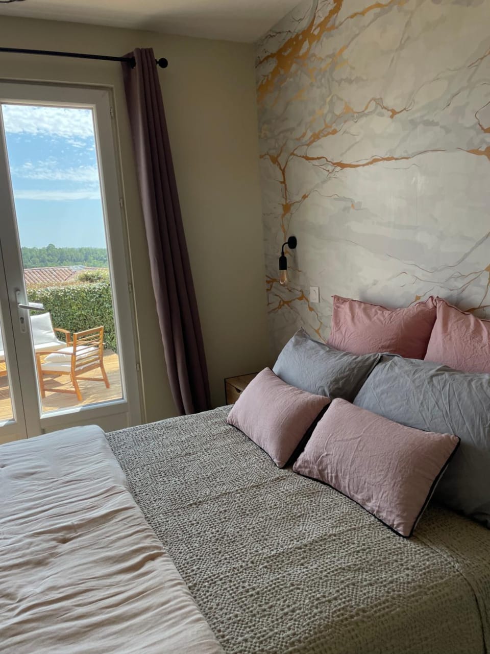 My husband and I stayed here one night while cycling through the area. The room has a beautiful view and a deck with a hot tub outside its doors. It has a sizable bathroom, comfortable bed, a kitchenette, locked bicycle parking, and a warm lovely host. Walking into town was easy. Thank you Nadege for the breakfast and hosting us.