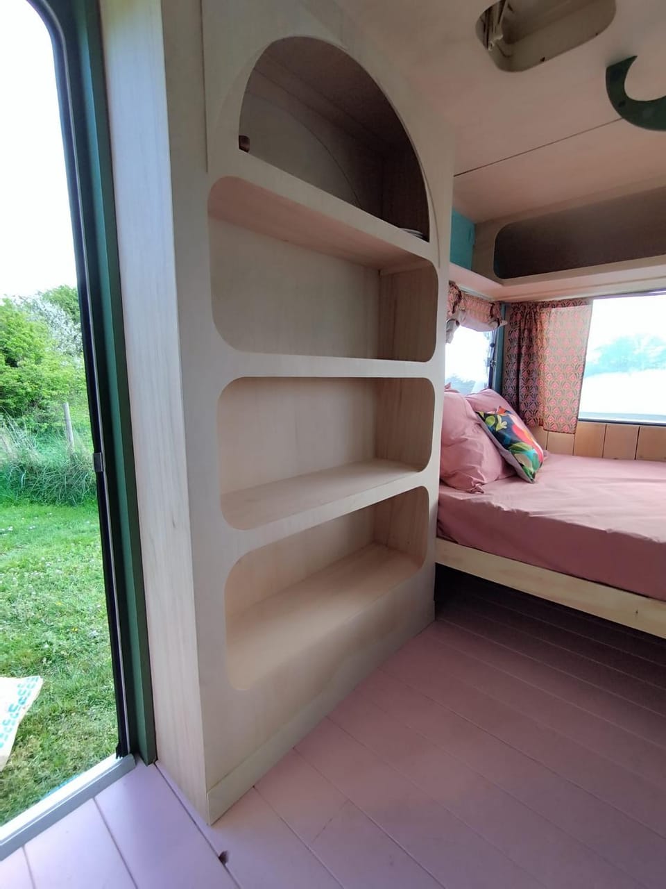 La caravane est magnifiquement décorée et le site avec vue sur la mer et le coucher de soleil est superbe