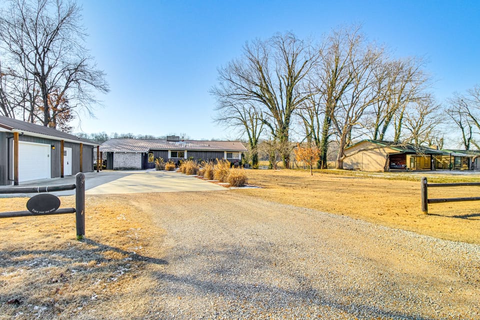 Enjoy a peaceful getaway with loved ones when you stay at this 4-bedroom, 5-bath Cotter home, featuring multiple living spaces, a detached garage suite, a deck, and stunning water views from almost every room. Situated directly on White River, 'Fish House' encourages days spent fly-fishing for trout, while evening brings opportunities to roast marshmallows around the fire pit. While uniquely enjoyable on its own, this rustic-yet-modern vacation rental is also near Bull Shoals attractions.