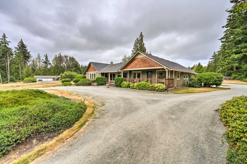 Multiple Living Spaces | 2,627 Sq Ft | Hiking Trails On-Site | 5-Acre Property | ~7 Mi to Camano Island State Park