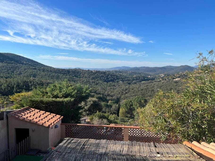 Une vue magnifique sur toute la vallée et la mer, une belle terrasse, une maison propre très bien équipée. La gentillesse de la propriétaire. Le calme, la grande piscine et les terrains de tennis de la résidence. Un petit supermarché juste à coté qui fait traiteur et primeur.