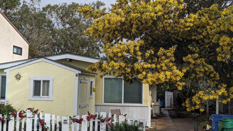 2 bedrooms, 1 bathroom. Living room with TV, VCR, DVD player, Bluetooth radio, and free WIFI. Heater/AC. Dining area. Kitchen with large fridge, microwave, stove/oven, and plenty of dishes for cooking and baking. Dog door with access to fenced backyard (no grass) Parking spaces Infront of house.