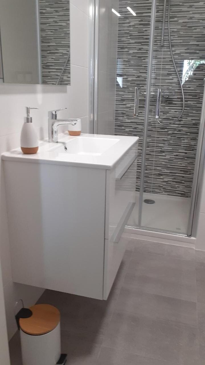 Petite maison moderne tout confort et avec une literie de bonne dimension et confortable.