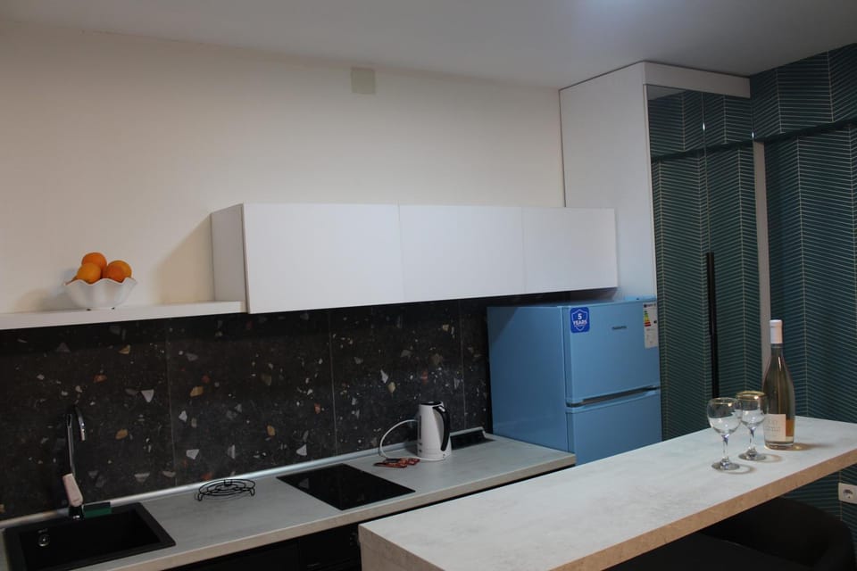 Комфортные апартаменты с двумя спальнями , кухня с окном на лестницу , но свет дневной проникает . Есть все необходимое для проживания, до Центра 15 минут пешком, супермаркет поблизости.