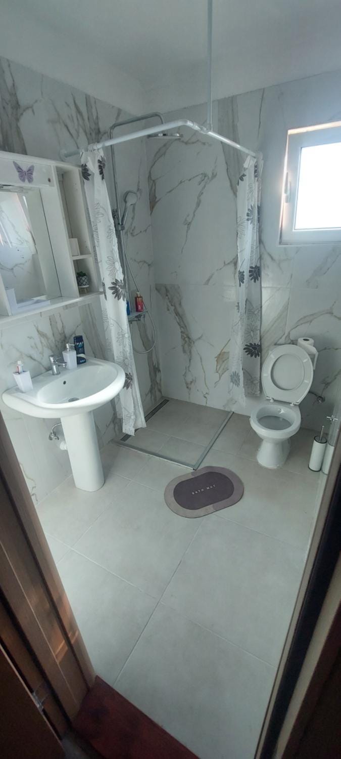 Kicsit nehéz volt megtalálni, egy keskeny, emelkedős utca szinte legvégén található. Sajnos kiírva semmi sem volt, igazából egy épülő ház látványát nyújtja kívülről, szerencsére a szállásadó kijött és fogadott minket. Belépve az emeleti vendégszobába egy teljesen más világ fogadott bennünket, tágas, tiszta, modern, nagyon jól felszerelt apartmanszoba, még a wc ablakból is tengeröből látszik